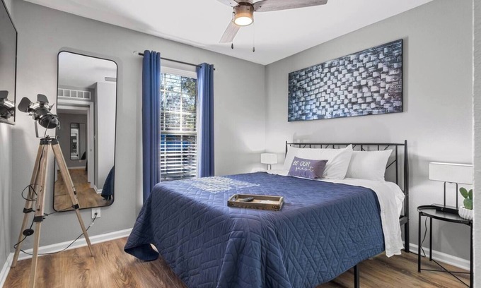 Spacious 2 bedroom townhouse completely remodeled with all the extras. Fast Wi-Fi, smart TVs in living room & bedrooms. Fully furnished kitchen with gas stove, stainless appliances & granite counters. Vinyl plank floors, neutral colors throughout. Furnishings include two queen beds, a large sectional, and a dining table that easily seats 6. Pet & child friendly with a private fenced back yard space. Laundry located in utility room off back patio. $50 per night per unapproved guest.