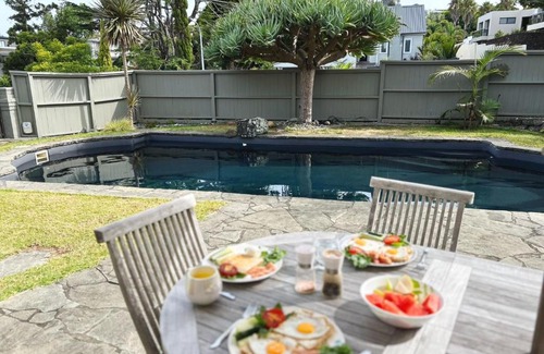 Yes, this St. Heliers house has a swimming pool. Check the Facility Overview section for details about the pool and other available facilities.
