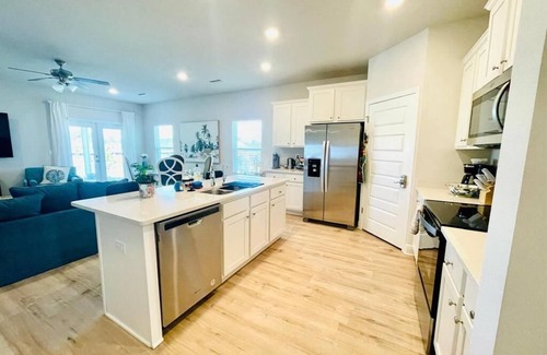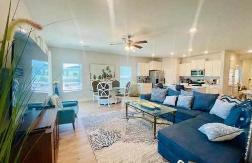 Port St. Joe is waiting for you at this 2-bedroom house. This phenomenal property offers 1 queen bed, 1 bunk bed, 1 bathroom with a bathtub, cozy living room with a sectional. Guests can take advantage of amenities like an iron, AC, washing machine, hair dryer, heating, and WiFi. Enjoy your time in Port St. Joe at this amazing Beach Resort! The part of the duplex. Please note that occasional noise from neighbors may be heard.