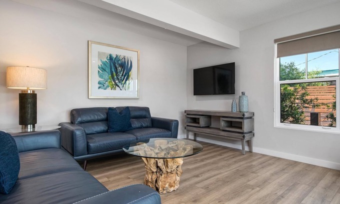 Brand new beautifully appointed two-bedroom, two-bathroom villa. Luxury living at its finest, each villa is uniquely designed offering comfort & style. This unit comes with a fully equipped kitchen and breakfast seating area. The bedrooms have king size deluxe beds and are appointed with a flat screen T.V. charging station & Bluetooth speaker. Master bedroom has en-suite bathroom with rain shower, main bathroom has shower, bathtub and vanity.