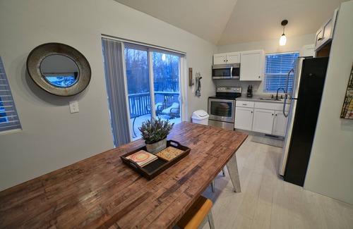 Amenities include stainless steel appliances, kitchen table that can seat 4, an open concept so you can socialize with the cook! There is a patio door off the the kitchen area that leads to the backyard/deck where there is plenty of seating for all! There is a gas and charcoal grill for your use as well as a picnic table, camping chairs, hammocks and fire pit for roasting marshmallows and enjoying your favorite beverage!