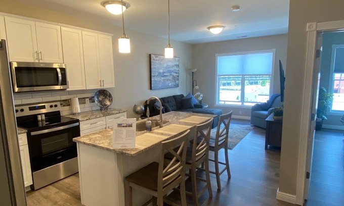 New Luxury apartment that sleeps 6 in the historic Village of Lancaster. Elevator access to the apartment and is located in the walkable Village with direct access to local shops, restaurants, shopping district and so much more. Apartment included washer/dryer and full kitchen with everything to make this your home away from home for a short time.