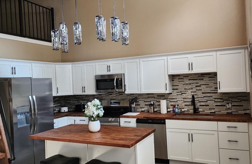 Discover this marvelous 2-bedroom gem in Carterville. This peaceful apartment features 2 full beds, WiFi, AC, iron, washing machine, dryer and heating. The kitchen has a full size refrigerator with ice and water in door, dishwasher and stove. The kitchen has all utensils, pots & pans, plates, silverware, cups, etc. you will need. There is also a small crockpot and coffeemaker with single serve or full pot. With a full bathroom, guests can relax and unwind. This apartment boasts a large loft which is the second bedroom but also has a desk for a working space and lots of extra room. We hope you enjoy what our place and Carterville has to offer.