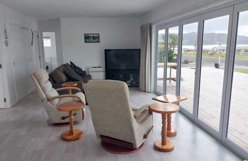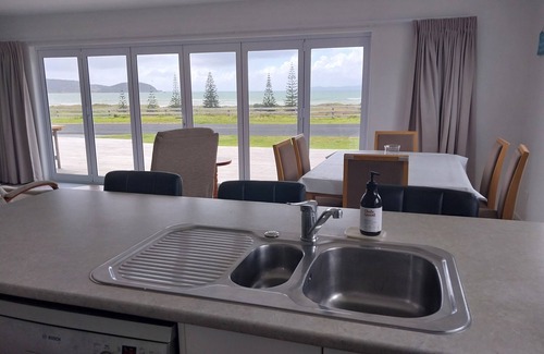 Open wide the doors along the front allowing uninhibited views of the beach and across Doubtless Bay.