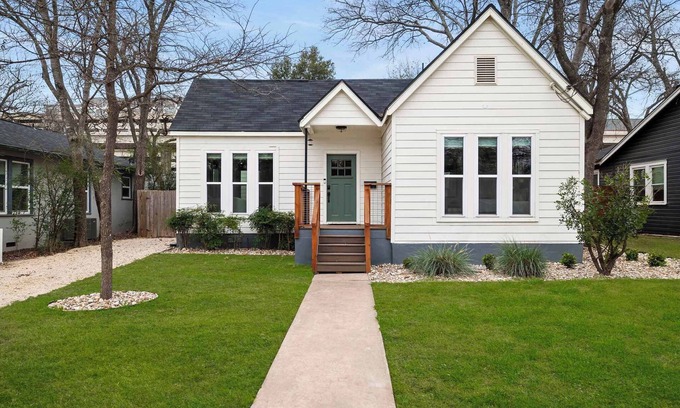 Step into the charm of a 1930s Cherrywood cottage beautifully enhanced with modern updates. Nestled beneath mature trees, the home welcomes you with a vibrant front door and a cozy covered porch—perfect for morning coffee or unwinding in the evening. Conveniently located near the University of Texas, St. David’s Medical Center, East Austin, and Downtown, you’ll be right in the heart of it all!