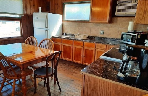 Here at Rock Harbor Cottages we have only 5 units spread across nearly 3 acres of mature trees. Waterfront access on the property with a private boat ramp, fish cleaning table, and 160 ft dockSleeps 7, 2 bedrooms, 1 bath. Bedroom 1; 1 Queen bed, Bedroom 2; 1 set of twin bunk beds, and a full bed, in the living room 1 full sleeper sofa. Air Conditioning, heat, flat screen cable tv, and Wifi. It includes a fully equipped kitchen (full size fridge, oven, and stove, coffee maker, toaster, microwave, all necessary utensils, dishes, pots and pans, ect...). Outside there is a gas grill, fire ring, wooden deck with table and chairs, with plenty of outdoor space to enjoy. The cottage is approximately 150 yards from the dock where you can catch bass, bluegill, catfish, perch, and crappie or just sit back and watch the day float by and catch beautiful sunsets. The rental includes a free dock space that can accommodate up to a 22 ft boat.