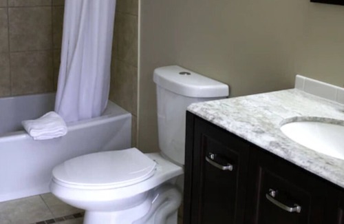 2 bedroom cottage new in Fall 2018. Each bedroom has a queen bed, dresser, desk, TV, and closet. Each cottage has a full kitchen with flatware, silverware, glassware, pots, and pans, some cooking utensils, toaster and coffee maker. There is a dining table with 4 chairs as well as futon in the main area to sleep a total of 6 people. Each cottage also has a private deck with gorgeous panoramic views of Seneca Lake. The cottage has 1 private bath with a deep tub/shower unit. Linens are provided, toiletries such as shampoo, soap, hair dryer etc is not provided. This cottage is located on the west side of Seneca Lake approx a mile from Watkins Glen we have lake access and lakeside Tiki Bar right across the street with kayak, boat, and jet ski rentals on property. We have a steep driveway so please be prepared for that upon arrival. Guests check in at the front desk of the Anchor Inn and Marina and from there will be directed to their cottage. Daily housekeeping not included, but for long term guest you can exchange your dirty linens at your convenience.
