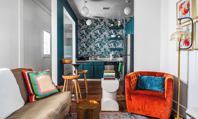 Nestled in the heart of Savannah's historic district, Twilight Garden Escape offers a serene and stylish retreat that perfectly blends historic charm with modern comfort. Designed by a professional interior designer, this beautifully remodeled home features two cozy bedrooms—one with a plush queen bed and another with charming bunk beds—making it ideal for families or small groups. The fully equipped kitchen is outfitted with modern appliances, perfect for preparing meals, while the inviting living room provides a warm and welcoming space to relax.