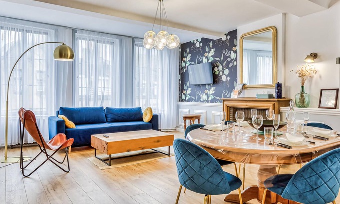 In the heart of the charming village of Carentan and ideally located to discover Normandy and the landing beaches, this spacious and stylishly furnished holiday apartment offers you a cosy retreat. In the bright and inviting living room, you can relax with a good book after a long day, and the kitchen invites you to conjure up culinary highlights for cosy meals with family or friends.