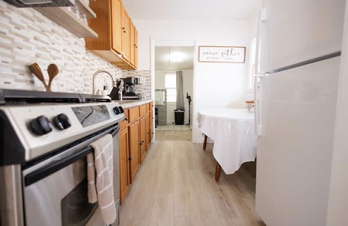 Welcome to your perfect little escape! This cute and cozy two-bedroom pet-friendly home is ideal for a relaxing getaway or a convenient short-term stay. Nestled near scenic walking trails and just a short stroll from local boat docks, you’ll enjoy the perfect blend of nature and nearby amenities. Inside, you’ll find a warm and inviting space with thoughtful touches throughout — including a comfy living room where the couch easily converts into a futon for extra sleeping space. There’s also a separate desk/vanity area, great for getting ready or catching up on a little work during your stay. Located just 10 minutes from our two major hospitals, this home is close to everything you need: an Irish pub for fun nights out, a Dollar General, gas station, local slot machines, and Berkot’s grocery store. Whether you’re here for outdoor adventures, a weekend getaway, or a short-term work trip — this cozy home has you (and your furry friends) covered!
