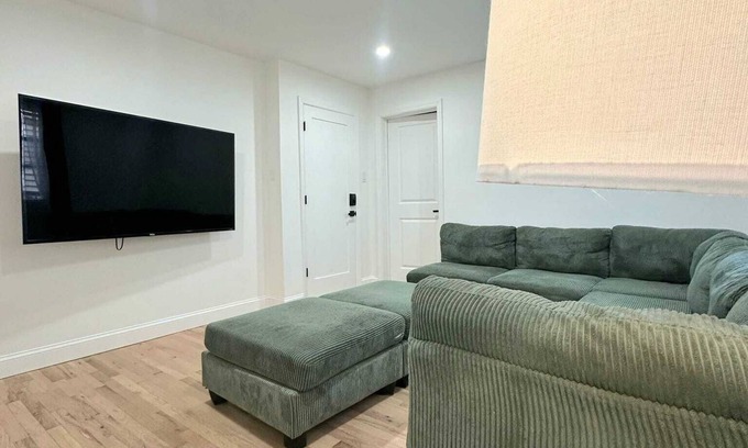 Enjoy a peaceful stay at this 2-bedroom house in Newark. This adorable property features 1 king bed, 1 queen bed, a cozy living room with a sofa bed, and a well-equipped bathroom with a hairdryer. Guests can also enjoy amenities like AC, WiFi, and an iron. Experience what Newark has to offer with a stay at our phenomenal house.