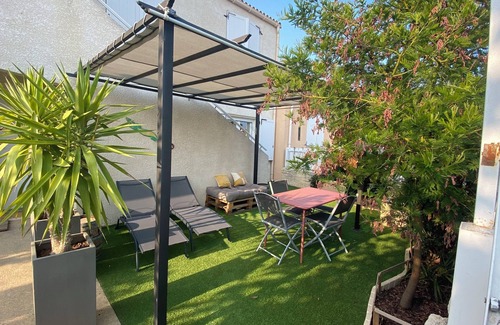 2-bedroom house with garden is located in Pomerols. 2-bedroom house with garden provides accommodation, featuring Air Conditioner, Designated Smoking Area, Bedding/Linens, among other amenities. This House features Air Conditioner, Designated Smoking Area, Bedding/Linens, to make your stay a comfortable one.