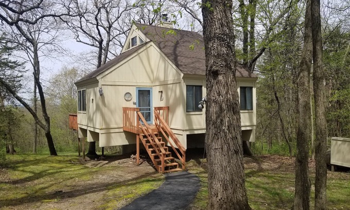 This cozy cottage is pet friendly, so you don't have to deal with the guilt of leaving your dog behind. This little house in the woods features a fireplace, internet, and a gas grill. The main level has a a master bedroom with a king bed and a second bedroom with 2 twin beds. The loft has an additional twin bed with a trundle underneath. An open spiral stair case gives you access to the loft and the lower level so it may not be suitable for small children. This home is perfect for sitting back and allowing life to slow down for a few days. This home also comes with Amenity Passes allowing you access to the Owners' Club where you can enjoy the indoor/outdoor pools, Game Room, Fitness Center, indoor/outdoor basketball courts, tennis courts, free WIFI and more. Sleeps 6. Maximum Occupancy 6.