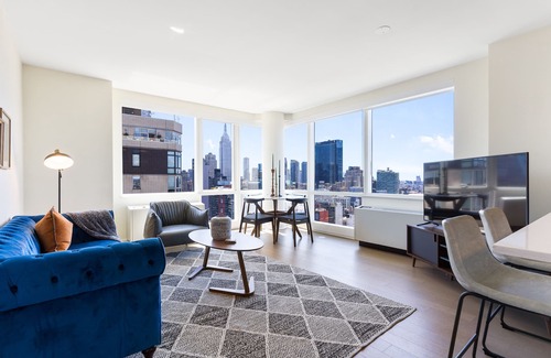 2-bedroom LUXURY building in delightful New York with AC, WiFi-VIEWS of NYC is located in Midtown South. 2-bedroom LUXURY building in delightful New York with AC, WiFi-VIEWS of NYC provides accommodation, featuring Laundry, Wheelchair Accessible, Security/Safety, among other amenities. This House features Laundry, Wheelchair Accessible, Security/Safety, to make your stay a comfortable one.