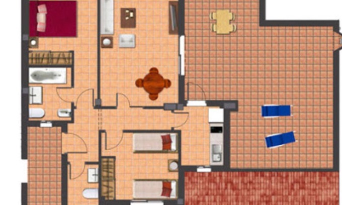 This apartment with a constructed area of 66.77 m2 has a terrace of 37.35 m2 with a table and four chairs. This apartment has an isolated kitchen.
