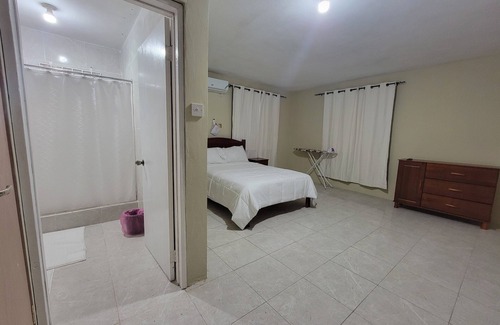 Montego Bay is waiting for you at this charming 2-bedroom resort. The cozy bedrooms feature 2 full beds, perfect for a good night's sleep after a day of exploring. Enjoy the convenience of amenities like AC, WiFi, and a washing machine. The bathroom is equipped with a refreshing shower and a hairdryer. Make your holiday one for the books with a stay at our place.