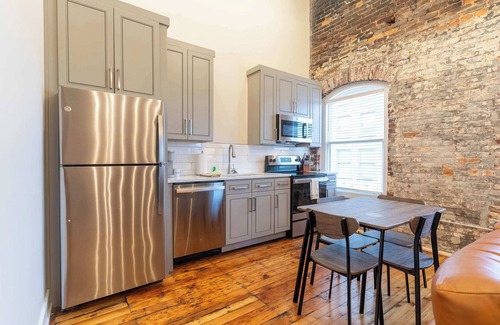 This aparthotel-style suite at The St. Clair features two private bedrooms, a full kitchen, and smart self check-in—perfect for couples, colleagues, or families. Located downtown near the Kentucky River, you’re minutes from Buffalo Trace, the Capitol, and Frankfort’s best food and drink. Complimentary parking included.
