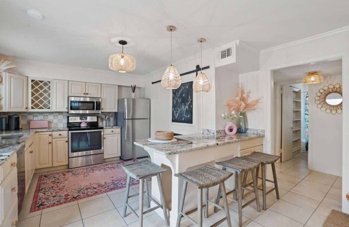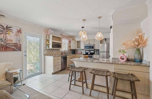 Escape to the Peach Retreat Suite at Paradise Island Estate, your perfect Fort Myers getaway! This charming 2-bedroom villa offers a tranquil retreat near the beach, theme parks, and RSW airport. Enjoy brand new king beds, a full bathroom, and an open living space. Relax by the resort-inspired pool with a swim-up bar, outdoor kitchen, and a lazy river. Plus, enjoy the game room with arcade games and a wet bar. Book your unforgettable vacation today!