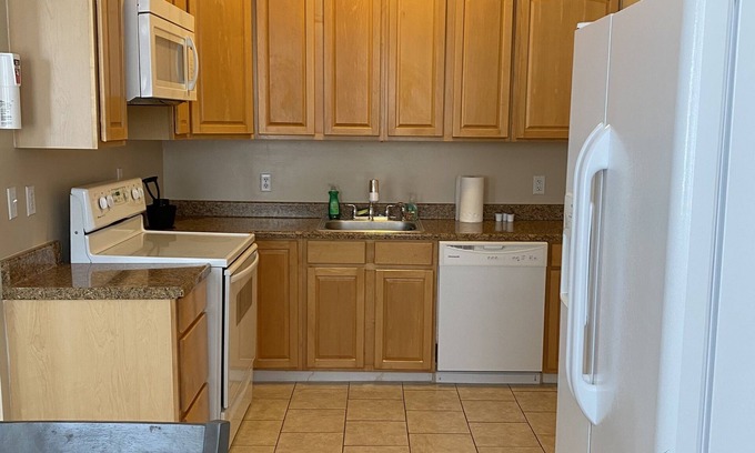 2 large bedrooms, 1 with a queen bed and large windows on one wall. 2nd bedroom has a king bed and no windows that is perfect for mid day nap or anyone that works nights and like to sleep during the day.