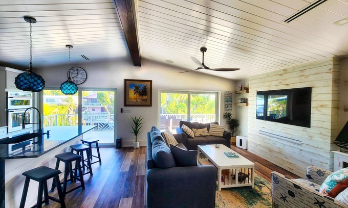 This charming retreat offers modern upgrades, blending comfort and style, with accommodations for up to four guests. The spacious layout includes a cozy king bedroom and a serene twin bedroom with two twin beds—ideal for families or friends. The remodeled interiors feature contemporary furnishings, a fully equipped kitchen, and all the conveniences of home.