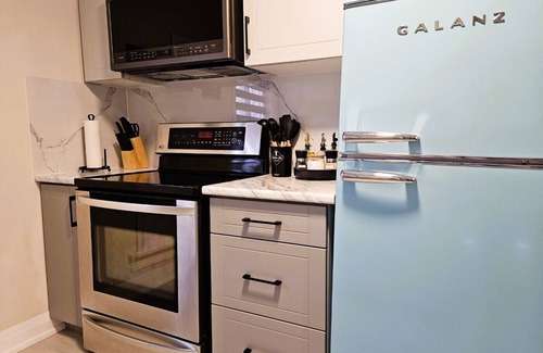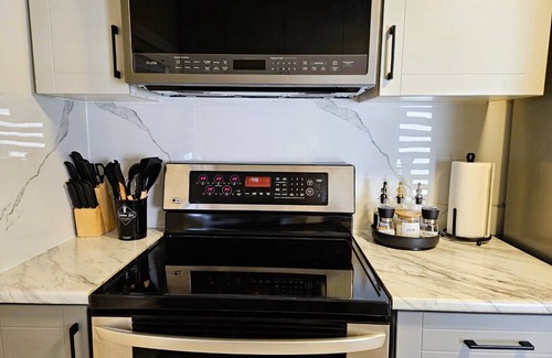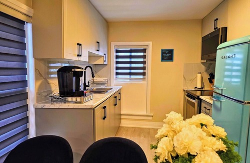 Our fully stocked kitchen has modern appliances and ample counter space. ◆ For your breakfast, we provide complimentary bread, milk, eggs, jams, coffee and cream, water, and other beverages. Hope you enjoy!!