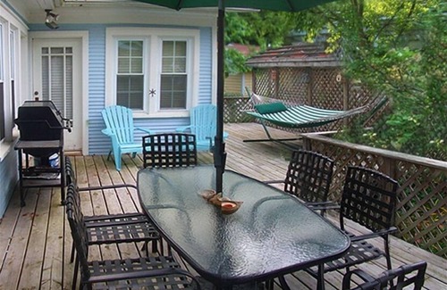Enjoy a Quintessential Classic Cottage with all the features and comfort you are looking for. Now in our 25th year. Load up our wagon and walk just a block and half to the beach and beautiful Lake Michigan. Swim, sunbathe and enjoy endless walks along Michigan’s clean beaches. Don’t miss the incredible sunsets and gaze at the stars. Walk three blocks to village shopping, cafes, restaurants, art galleries, and gourmet foods. That’s just the beginning because there is so much to do and it is all very close by. (Look at the list of activities below) The owner provides a comprehensive guide to this year's attractions, events, and Shops. Enjoy a Quintessential Classic Union Pier Cottage with all the modern updates to make your stay comfortable and enjoyable. HDTV, Broadband Wi-Fi Internet, Bluetooth Sound system, Microwave, Dishwasher, Washer/Dryer, Jacuzzi bathtub, walk-in shower, Weber gas grill, hammock, outdoor heated shower, large dining area with enclosed deck, great for parties. Comfortable furnishings and beds. Three bedrooms, sleeps 6-8, 2 bathrooms, laundry room.