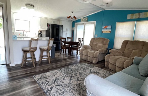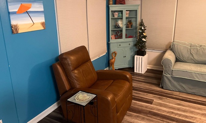 Newly renovated retreat featuring two bedrooms, bathroom completely updated with large shower, new kitchen with quartz countertops, and updated appliances. The living area is bright and beachy with a beautiful electric fireplace and large Smart TV. Amenities include refrigerator (2), dishwasher, microwave, gas stove/oven, toaster, coffee maker, washer/dryer, 2 TVs with the internet, DVD player, central air, fireplace, and plenty of parking.