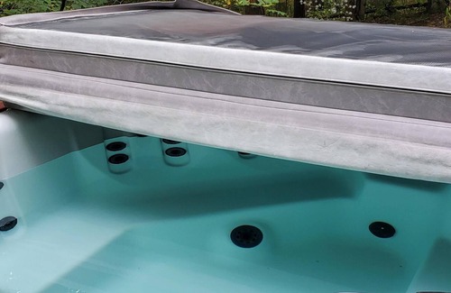 Off the hallway is a door leading out to the deck, where you will find the hot tub and the fire-pit area where everyone can enjoy pastimes such as campfire stories and marshmallow toasting.