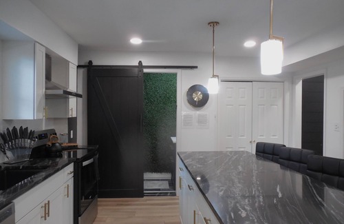 Our newest property has been impeccably renovated and equipped with fun,modern touches, yet still lets you know you’re in Mountaineer Country! It sits on 2 floors, has AC & heat throughout, full kitchen with a gorgeous spacious island with seating for 4 at the bar, open to a dining area with a table that seats 4, as well. There is a W/D on site, 1 Queen Bedroom, 1 King bedroom, a trundle bed available for the queen bedroom & a sofa that opens out to a queen-sized bed, 2.5 baths.
