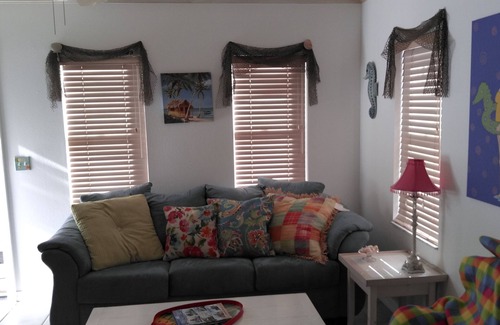 Fantastic-fun decorated in Florida style beachside cottage. Fully furnished including appliances, utensils, linens and just about anything you will need for a great vacation at the beach. This 2-bedroom cottage is less than 100 feet to the most peaceful beaches in Florida.