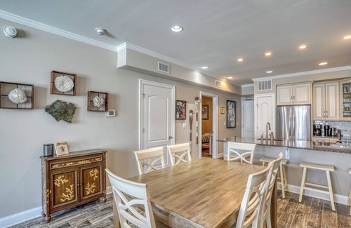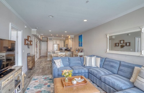 This modern two bedroom, two bath, condominium sleeps 6 comfortably. The spacious first bedroom features a king-sized bed with ensuite bathroom, access to the balcony, and flat-screen TV. The second bedroom offers a queen bed and access to the full hall bathroom. A washer and dryer are adjacent to the second bathroom.