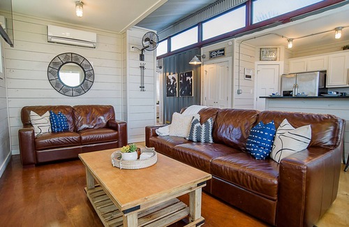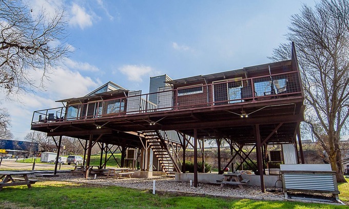 Welcome to Dam Camp! TWO spacious two bedroom, two bath cabins on 3 acre property on the Guadalupe River. Enjoy kayaking, paddle boarding, sitting by the fire, relaxing in a hammock, an outdoor shower and fishing at this relaxing retreat. Perfect retreat for 3 families! Sleeps up to 12 people.
