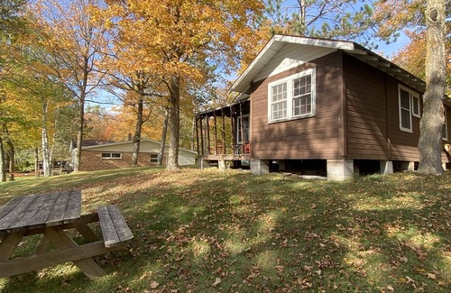 Many cute cabins at Woodland Resort! This is cabin 2, ALL have lake access to Pokegama Lake! Great view, fire pit, hammock, porch, fully furnished, nice kitchen, grill, picnic tables, just minutes to town, walking distance to Zorbaz and The Pickled Loon Saloon. There is a boat house with life jackets, electric and a fridge/freezer, tubes and a dock to use as well! There are RV hook ups, and a lot of flat land to host fun yard games! Come see for yourself what brings guests back year after year!