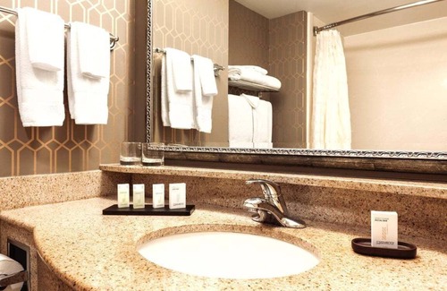 Ideal for groups of friends or colleagues who wish to book a hotel suite in Louisville, the 2 Room Suite-1 King Bed-Non-smoking connects with the 2 Room Suite-2 Double Beds-Non-smoking-ADA Accessible to offer 860 square feet of comfortable space. In the evening, wash away the stress of the day in one of the two bathrooms, one in which has accessible features with a roll-in shower and deluxe amenities. With a total of two bedrooms, this pair of connecting suites features a King-sized bed and two Double beds. The cozy living spaces lend two sofabeds, perfect for sleeping your extra guests. There’s also a versatile desk area for business travelers. With a stay in this pair of connecting suites, you will be treated to complimentary perks such as made-to-order breakfasts. Two-room suites with modern kitchens offer a relaxing home-away-from-home feeling at the hotel. Start your morning off on the right foot with a complimentary breakfast featuring made-to-order omelets, oatmeal with toppings, cereal, and pastries, and unwind after a busy day at the evening reception, where you can enjoy complimentary beer, wine, cocktails, soft drinks, and appetizers. Downtown Louisville and the Louisville International Airport are both within a 20-minute drive, and you'll find plenty of options for on-site recreation including a fitness center, a cafe serving bistro-style fare, and an indoor pool with a hot tub.In November 2022, Hilton and Peloton Interactive, Inc. announced an industry-first partnership, making Hilton the first hospitality brand to feature Peloton Bikes across its entire U.S. hotel portfolio of 18 award-winning brands. Nearly all 5,400 U.S. Hilton-branded hotels - from Hampton by Hilton to Waldorf Astoria - will feature at least one Peloton Bike in every fitness center, providing guests with a more holistic wellness experience, including access to Peloton's world-class instructors and expansive connected fitness content. For more information regarding Hilton and Peloton Interactive, Inc's partnership, please contact Hilton directly.
