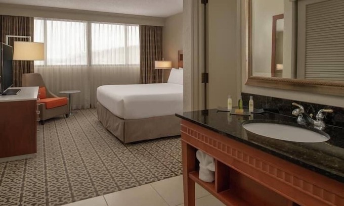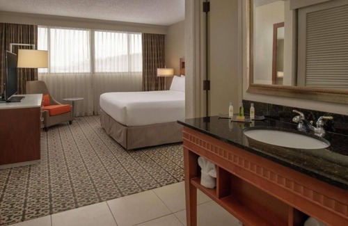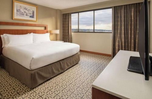 The 1 King Bed 2 Room Suite Sofabed- Non Smoking delivers the cozy comforts of home. The living room features a large work desk, mini-fridge, an overstuffed chair and a double sofabed for extra guests. Sleep deeply in your King-sized bed with piles of plush pillows in the separate bedroom. Enjoy a refreshing shower with plenty of room provided by the curved shower rod. This accommodation is ideal for travelers looking to book a one-bedroom suite in Seattle. With a contemporary decor, hotel offers spacious suites with custom-designed beds and separate living areas where you can stretch out and relax after a full day of exploring. A mere nine minutes from Seattle-Tacoma Airport, this hotel also caters to business travelers and features a business center as well as over 12,377 square feet of flexible event space. Other onsite amenities include a café, lounge, whirlpool tub, indoor pool, as well as an all-day casual restaurant with Northwest favorites and buffet breakfasts. If you want to do some exploring, rest assured that the hotel places you near the Seattle Waterfront, where you can take a ferry to visit the iconic Puget Sound Islands. In November 2022, Hilton and Peloton Interactive, Inc. announced an industry-first partnership, making Hilton the first hospitality brand to feature Peloton Bikes across its entire U.S. hotel portfolio of 18 award-winning brands. Nearly all 5,400 U.S. Hilton-branded hotels - from Hampton by Hilton to Waldorf Astoria - will feature at least one Peloton Bike in every fitness center, providing guests with a more holistic wellness experience, including access to Peloton's world-class instructors and expansive connected fitness content. For more information regarding Hilton and Peloton Interactive, Inc's partnership, please contact Hilton directly.