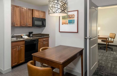 The 1 King Bed Studio Suite Non-smoking + 1 King Bed Studio Suite Non-smoking at Homewood Suites Phoenix North-Happy Valley is an apartment-style suite, perfect for the discerning traveler. Each sitting area features a full-sized sofabed, fully-equipped kitchen, dining table for two which can also double as a dedicated workspace, and large windows to allow in plenty of natural light. Both bedrooms boast King-sized beds with premium bedding and blackout drapes to ensure a full night of deep sleep. Two sleek bathrooms also adorn the suites with traditional shower/tub combinations and granite-top vanities to heighten your morning routine. This suite is ideal for those seeking a two-bedroom suite in Phoenix. Ideal for extended stays, business trips, and family travel, the Homewood Suites Phoenix North-Happy Valley offers spacious suites with full kitchens and cozy living areas. Start your morning with a free hot breakfast, and take advantage of the hotel's complimentary grocery shopping service to enjoy the convenience of a fully-stocked kitchen when you arrive. This all-suite hotel is located an eight-minute drive from Wet 'n' Wild Phoenix water park, approximately 20-minutes from downtown Phoenix, and is within a 12-minute drive of several hiking and outdoor recreation areas including the Phoenix Sonoran Preserve and Cave Buttes Recreation Area.