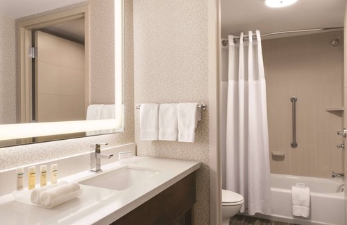 The 2 Queen Beds 1 Bedroom Suite will make you and your guests feel at home with its apartment-style amenities. The spacious living room features a fully-equipped kitchen with twin-burner stove and dishwasher, a commodious sofabed, plush armchair, and a dedicated workspace with ergonomic chair. The bedroom boasts two Queen-sized beds for added privacy and blackout curtains to ensure a full night of deep sleep. An elegant bathroom also adorns the suite with a curved-rod shower/tub combination and expansive vanity. This suite is ideal for those seeking a one-bedroom suite in Washington DC. Stay right in the heart of historic Washington, D.C. at the hotel. This all-suite hotel is just a six-minute walk from Nationals Park, making it an excellent choice for MLB fans planning to attend a game, and a nine-minute walk from the picturesque Anacostia Riverwalk Trail. Popular attractions including the United States Capitol, Smithsonian Museums, U.S. Navy Museum, Supreme Court, and Washington Monument are all within a six-minute drive. Each suite features a fully-equipped kitchen that makes this hotel perfectly suited to extended stays or traveling with children, and the hotel offers a complimentary grocery shopping service to ensure everything on your list is ready and waiting upon your arrival. Your stay also includes a complimentary evening reception with drinks and appetizers, as well as a hot breakfast each morning.In November 2022, Hilton and Peloton Interactive, Inc. announced an industry-first partnership, making Hilton the first hospitality brand to feature Peloton Bikes across its entire U.S. hotel portfolio of 18 award-winning brands. Nearly all 5,400 U.S. Hilton-branded hotels - from Hampton by Hilton to Waldorf Astoria - will feature at least one Peloton Bike in every fitness center, providing guests with a more holistic wellness experience, including access to Peloton's world-class instructors and expansive connected fitness content. For more information regarding Hilton and Peloton Interactive, Inc's partnership, please contact Hilton directly.