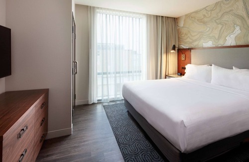 During your stay in the 1 King Bed 2 Room Suite at the Embassy Suites Amarillo Downtown, you can begin each morning with a complimentary hot breakfast and unwind after a busy day with appetizers and drinks at the evening receptions on weeknights. This one-bedroom suite opens with a spacious living room where you can work comfortably at a desk with an ergonomic chair, prepare a quick snack with the microwave and mini-fridge, or stretch out on the sleeper sofa to watch a movie. The separate bedroom is furnished with one King-size bed. Ideal for extended stays and short breaks alike, the Embassy Suites Amarillo Downtown boasts a convenient location opposite the Amarillo Civic Center and less than ten miles from the Rick Husband Amarillo International Airport. Each suite provides a wet bar, coffeemaker, mini-fridge, microwave, flat-screen television, and speedy WiFi. Start your day with a hot breakfast, then treat yourself to a soak in the indoor pool or hot tub. Squeeze in a workout at the 24-hour gym, or pick up a quick bite to eat at the snack shop. As the day winds down, attend a complimentary evening social for drinks and appetizers, as well as a chance to mingle with fellow guests.