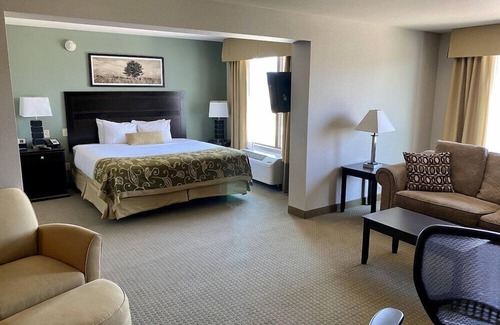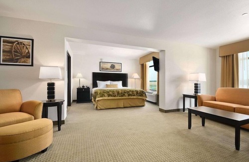 Make yourself at home with 570 square feet of space to stretch out in when you stay in the 1 King Bed Suite at the Wingate By Wyndham Frisco. Each morning, you can fuel up for the day ahead at the complimentary breakfast buffet, while a microwave and mini-fridge make it easy to enjoy cold drinks or hot snacks in the comfort of your suite. Relax in the spacious living area, or stretch out on the King-size bed for a refreshing nap or to get lost in a good book. During your stay at the Wingate By Wyndham Frisco, you can begin each day at the complimentary breakfast buffet, where you'll find selections including eggs, sausage, biscuits, and muffins. Relax with a soothing soak in the hot tub, take a refreshing dip in the heated indoor pool, or visit the fitness room for a workout. Choose from multiple golf courses located within a ten-minute drive, enjoy a day of fun in the sun at Hawaiian Falls Waterpark just ten minutes away, or take a 12-minute drive to downtown Frisco to visit the National Videogame Museum or catch a game at Toyota Stadium.