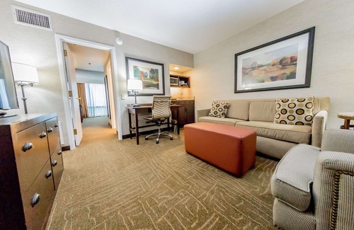 Experience Lexington from the comfort of the 2 Room Suite - 1 King Bed. This well-appointed accommodation boasts a spacious living area featuring a refrigerator, microwave, sofabed, and wet bar as well as modern entertainment amenities, including a 50" flat-screen TV with premium channels. The glass shower adds a touch of elegance while the ergonomic workspace provides convenience for business travelers. At the end of the day, a cozy, King-size bed awaits you in the private bedroom. With an informal lounge and atrium restaurant, hotel offers an assortment of onsite amenities, including an outdoor pool and a fitness center. Ideal for travelers who wish to book a hotel suite in Lexington, this hotel also features free airport shuttles, as well as a business center and seven meeting rooms for business travelers. Guests can revel in beautifully-furnished, two-bedroom suites with separate living areas and sofabeds to comfortably sleep your extra visitors. The suites also provide flat-screen televisions, mini-refrigerators and custom-designed beds with premium bedding to lull you into a restorative sleep. If you feel like exploring, rest assured that the hotel offers an easy access to the Lexington Green Mall through a private walk-away.