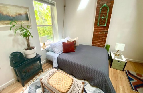 There is free street parking available usually directly in front of the building, or nearby. The apartment is two floors, a flight of stairs and two half flights up to the apartment, and has five other private apartments in a safe and secure building. Walk steps from your front door to many of New Haven’s best and most famous restaurants and pizzerias on State Street! If you are new to town my partner and I are happy to help get you settled in and offer a guide to local markets, shops, restaurants, and more. There is a grassy, communal courtyard area with internet access in a gated, private area behind the building. There are benches and two outdoor dining tables with chairs for your enjoyment. Sorry, no pets or smoking allowed. If you are interested in having your children stay, please send a direct message to inquire about safety measures since this apartment has stairs and is lofted. We look forward to hosting you!