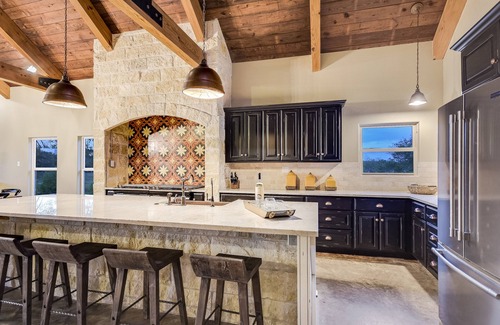 The property also features a large, resort style swimming pool, an over-sized hot tub large enough to seat 10 people, and a cozy fire pit. All in a beautiful spot in the Blanco River valley. THE POOL IS NOT HEATED.