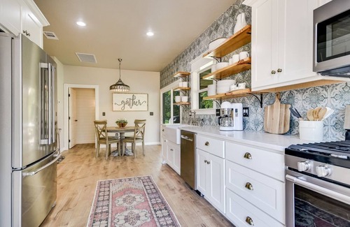 Our farmhouse inspired converted barn is 2 bedrooms, 1 large shared loft and 2.5 baths. The barn-house has two bedrooms downstairs (one king bedroom and one queen bedroom). Both rooms share a large full bathroom and a half bath on the first floor. An exterior staircase leads to an adorable farmhouse loft that is perfect for families, a teen hang out, or like minded guests. The upstairs loft has a full bathroom, 2 queen beds, 1 full sized bed, a pull out sofa, smart TV and DVD and a table and chairs for games/puzzles, etc.