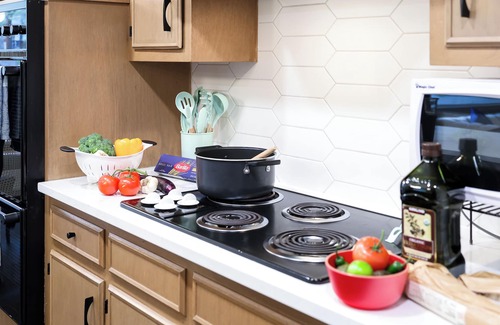 The kitchen is equipped with all the essentials for cooking, major appliances, and smaller ones, including a blender, microwave, tea kettle, and three coffee makers! We have a Keurig, a brew coffee maker (which does not use paper filters), and a French press. To make your stay even more enjoyable, we provide coffee as well!