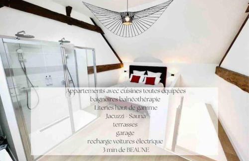 2.7 miles from Beaune Train Station in Beaune, (2) La suite Premier Cru 3km de Beaune provides accommodations with access to a sauna and hot tub. Providing a garden, the property is located within 3.3 miles of Hospices Civils de Beaune. There's a terrace and guests have access to free Wifi, free private parking, and an electric vehicle charging station. The air-conditioned apartment consists of 1 bedroom, a living room, a fully equipped kitchen with a fridge, and 1 bathroom with a hot tub and bathrobes. Towels and bed linen are featured in the apartment. For added privacy, the accommodation features a private entrance. Beaune Exhibition Center is 3.5 miles from the apartment, while Chalon sur Saône Exhibition Center is 21 miles away. Dole-Jura Airport is 41 miles from the property.