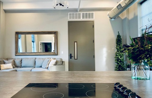 The North Flat embodies historic elements both rustic and refined. Vaulted ceilings, exposed concrete, and classy furnishings juxtapose texture and materials. Experience an ambiance perfect for a romantic getaway or a retreat that will leave you feeling rejuvenated for another day of work or play.