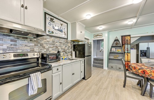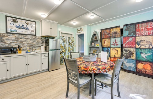 Craving a tranquil escape to the Pacific Northwest? This Hoodsport vacation rental delivers! Tucked right beside Lake Cushman, this 1-bedroom, 1-bathroom cabin offers a peaceful home base for outdoor lovers. Wake up to mountain views on the private deck, then unwind after a day of hiking or fishing on the Olympic Peninsula with a home-cooked dinner, good company, and a movie night on the couch.