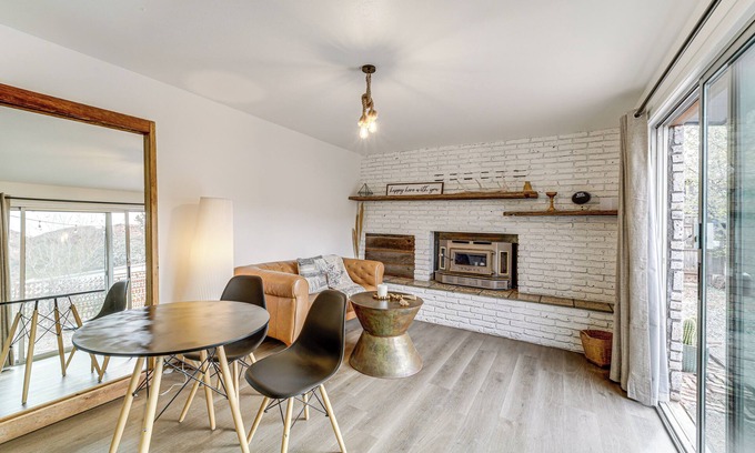 Give in to your wanderlust and visit this charming 1-bed, 1-bath vacation rental near some of the area's most sought-after hikes. Explore to your heart's content on the abundance of local red rock trails, or dabble in gallery viewings, wine tastings, and culinary endeavors in Downtown Sedona. Back home, settle into the hammock, perfect for stargazing in a city known for its vast night skies.