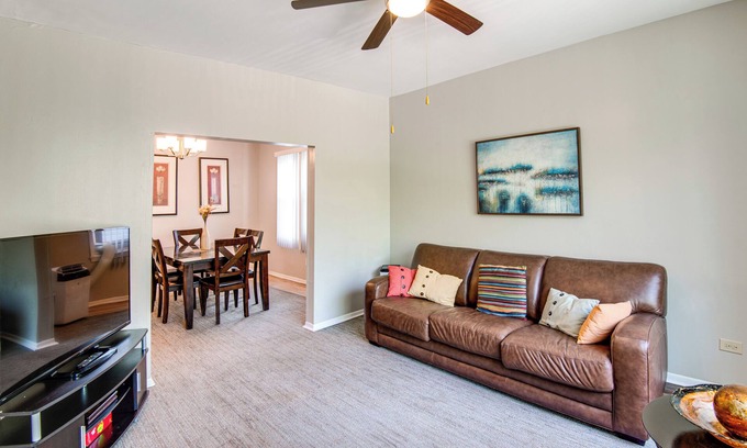 Settle in and stay awhile — make this 3-bedroom, 1-bath vacation rental your Chi-town home away from home! Whether you're here for work or a long-term escape, you'll love that this centrally located retreat puts you close to the Metra, bustling businesses, and some of the Midwest's most iconic attractions. Ready to unwind? Kick back with a drink on the balcony or cue up your favorite show on the Smart TV. Book today!