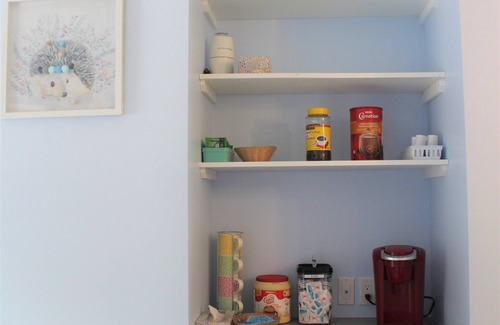 2 Queen beds, and a Queen sofa-bed for 6 people sleep, Luxury down filled duvet and memory foam bed mattress makes an exceptional sleeping experience. A fully equipped kitchen with adjacent BBQ area in the backyard facing a quiet treed space, in-suite laundry, Free parking, Wifi, and Netflix.